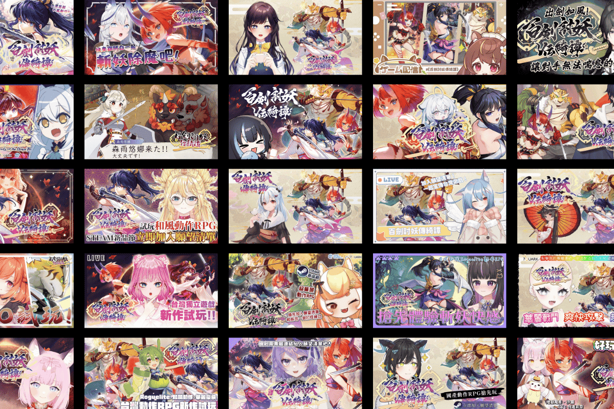 我們為社群玩家期盼已久的《百劍討妖傳綺譚》規劃上線宣傳,針對遊戲形象與內容,精準媒合調性契合的 KOL、KOC 與 Vtuber,進行全方位線上宣傳,合作人數超過 30 位。